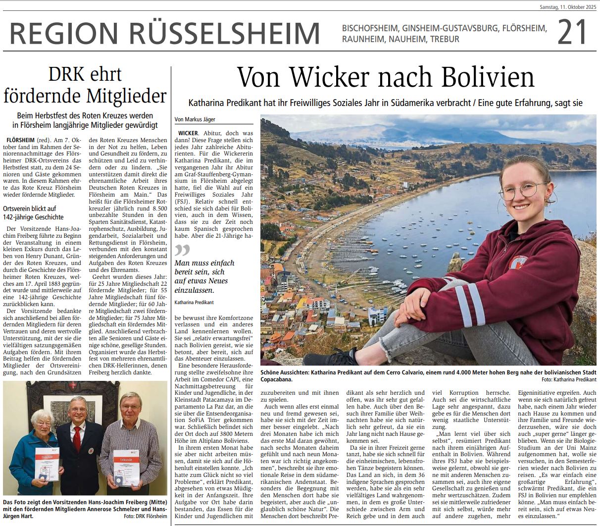 Von Wicker nach Bolivien - Main-Spitze berichtet über Katharina Predikant, die ihr Freiwilliges Soziales Jahr in Südamerika verbracht hat (Oktober 2025)