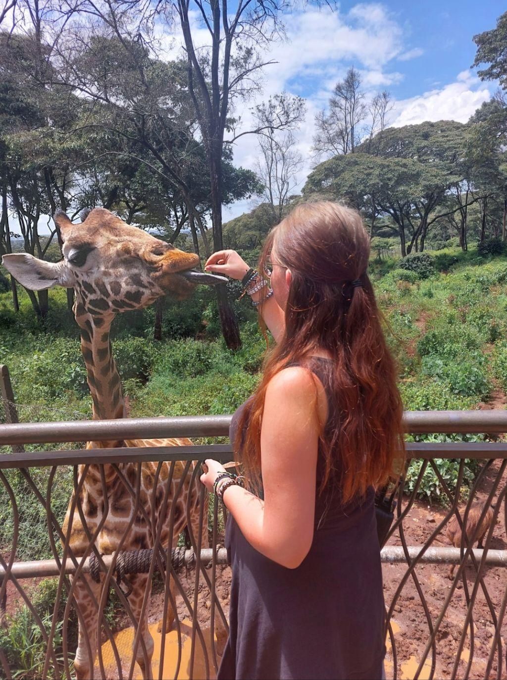 Am Ende von unserer Zeit in Nairobi konnten wir sogar in einer Auffangstation Giraffen füttern.