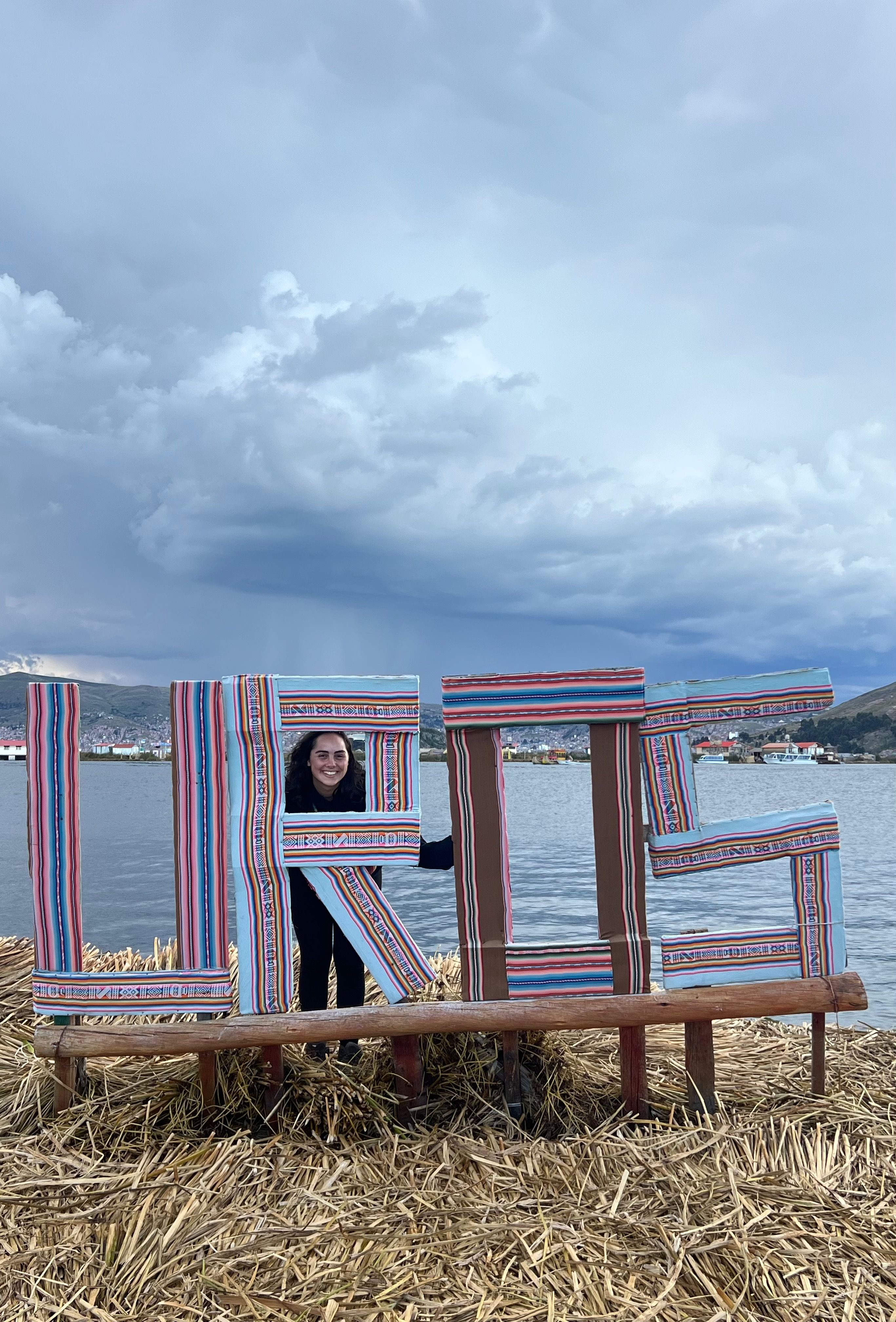Uros-Schriftzug auf den schwimmenden Uros-Inseln