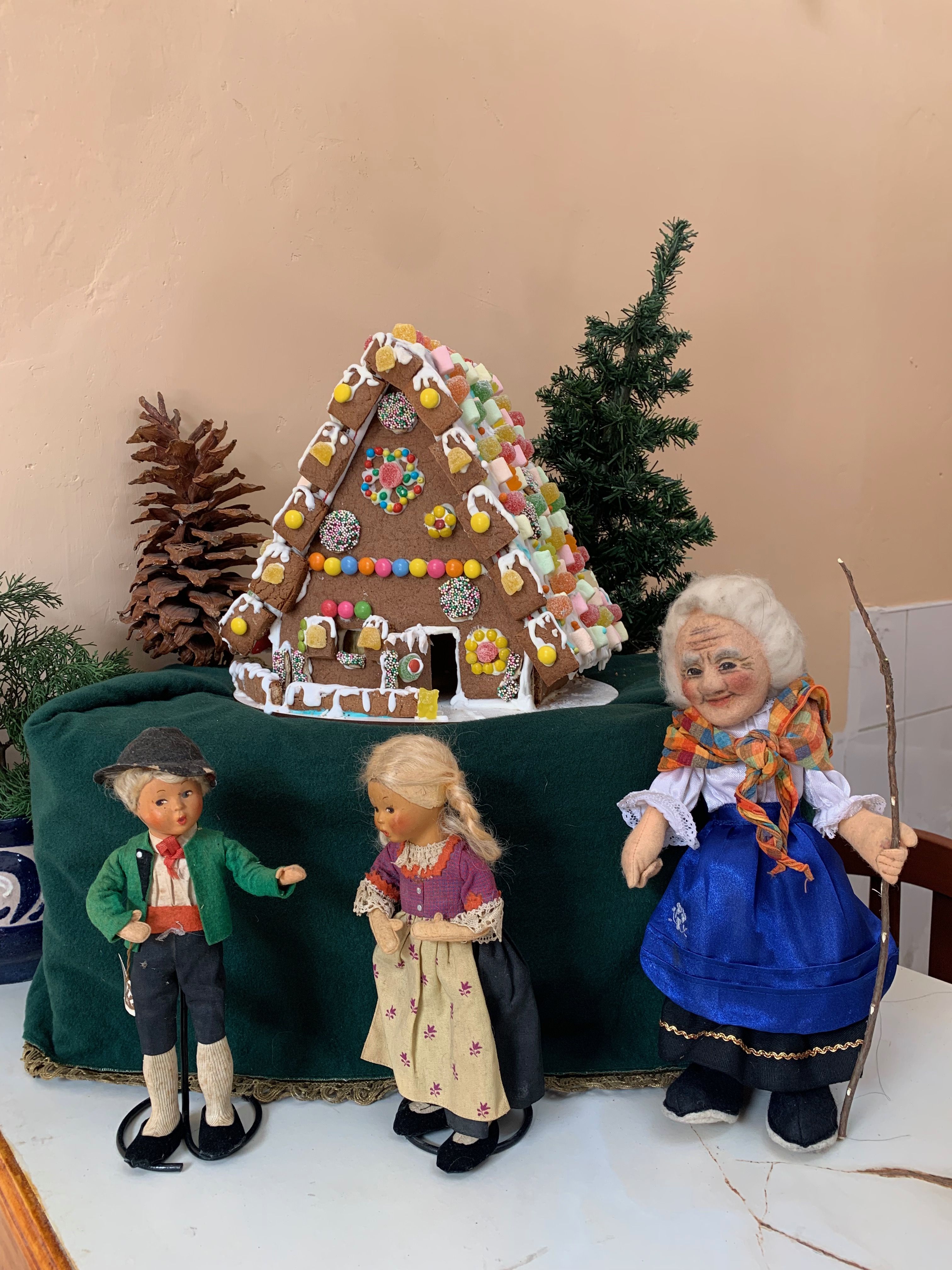 Lebkuchenhaus mit Hänsel, Gretel und der Hexe