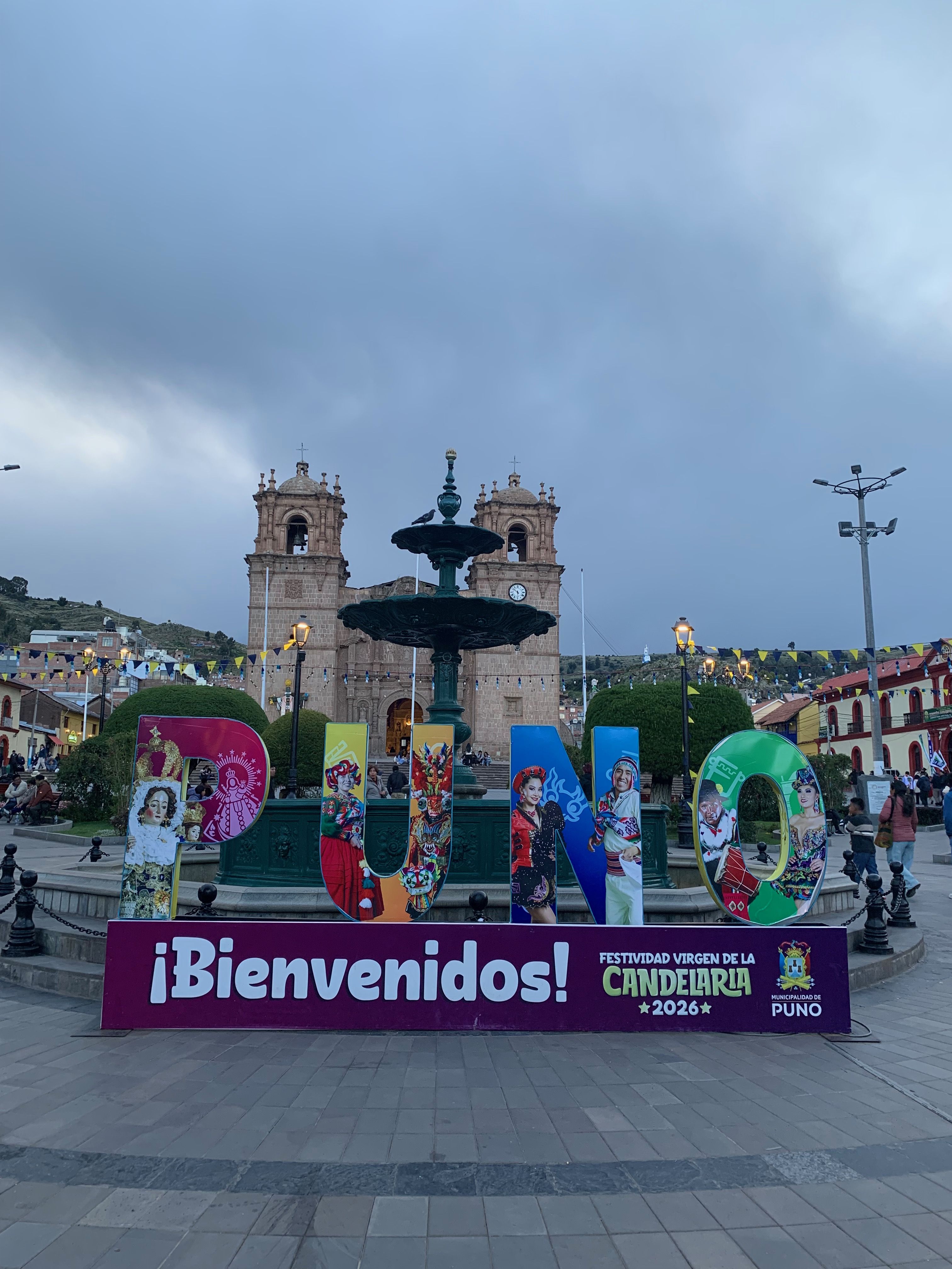 Puno-Schriftzug mit der Stadt im Hintergrund