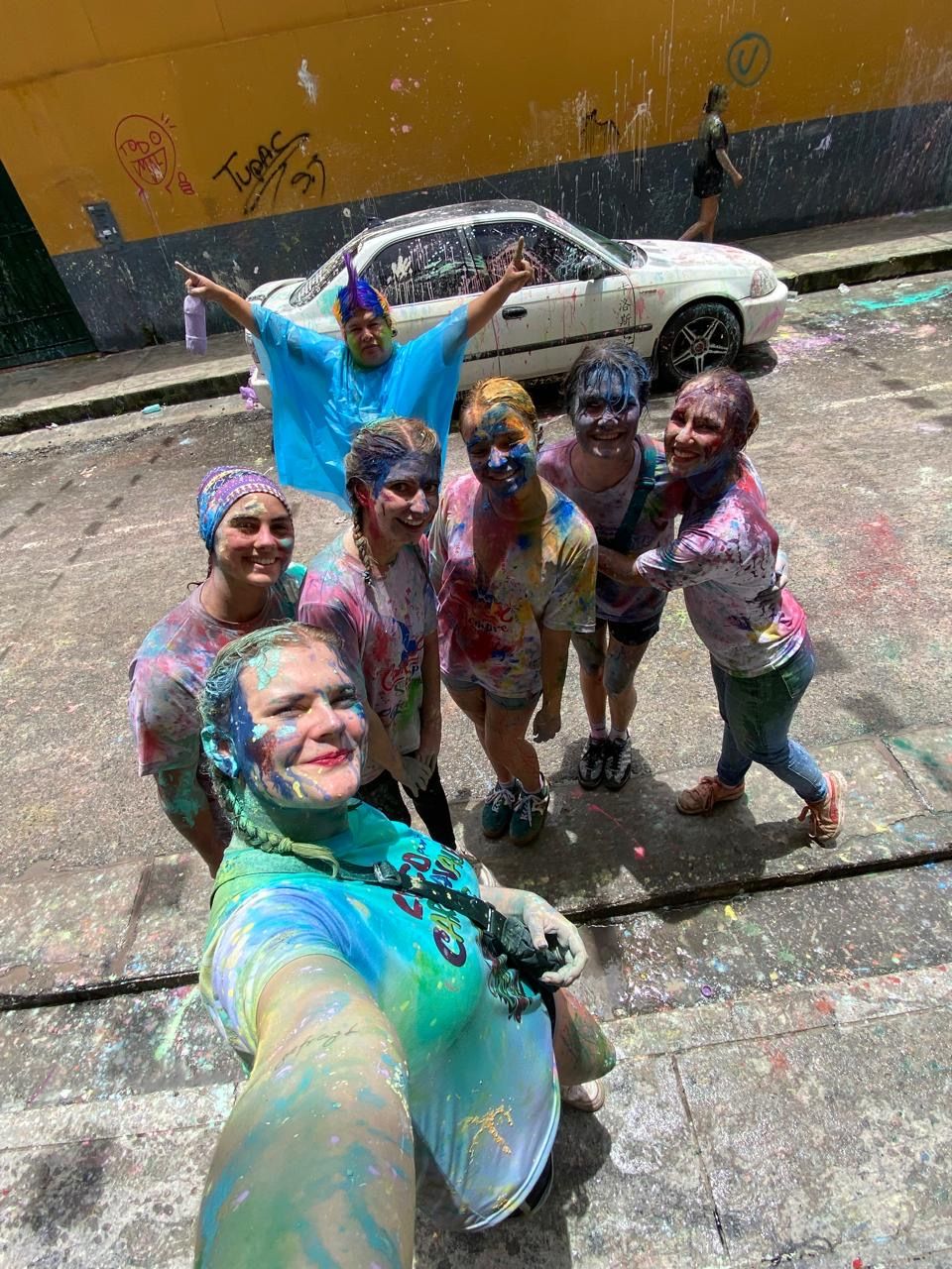 Eins der wichtigsten Ereignisse in Peru stand natürlich auch noch an: Karneval. Nasse und in Farben getränkte Kleider garantiert (zumindest hier)! Cajamarca ist als Karnevals-Stadt in Peru bekannt, weshalb auch viele Menschen von außerhalb anreisen, um dieses Spektakel nicht zu verpassen. Es gibt jedes Jahr eine Farbschlacht, bei der man keine Kleider anziehen sollte, die man gerne trägt. Wir haben uns extra Karnevals-T-Shirts gekauft und uns mit Vaseline eingeschmiert, um die Farben später besser abwaschen zu können. Sobald wir aus der Tür traten, bekamen wir einen Eimer Farbe über den Kopf geschüttet. Es war wirklich verrückt, aber sehr lustig. :-)