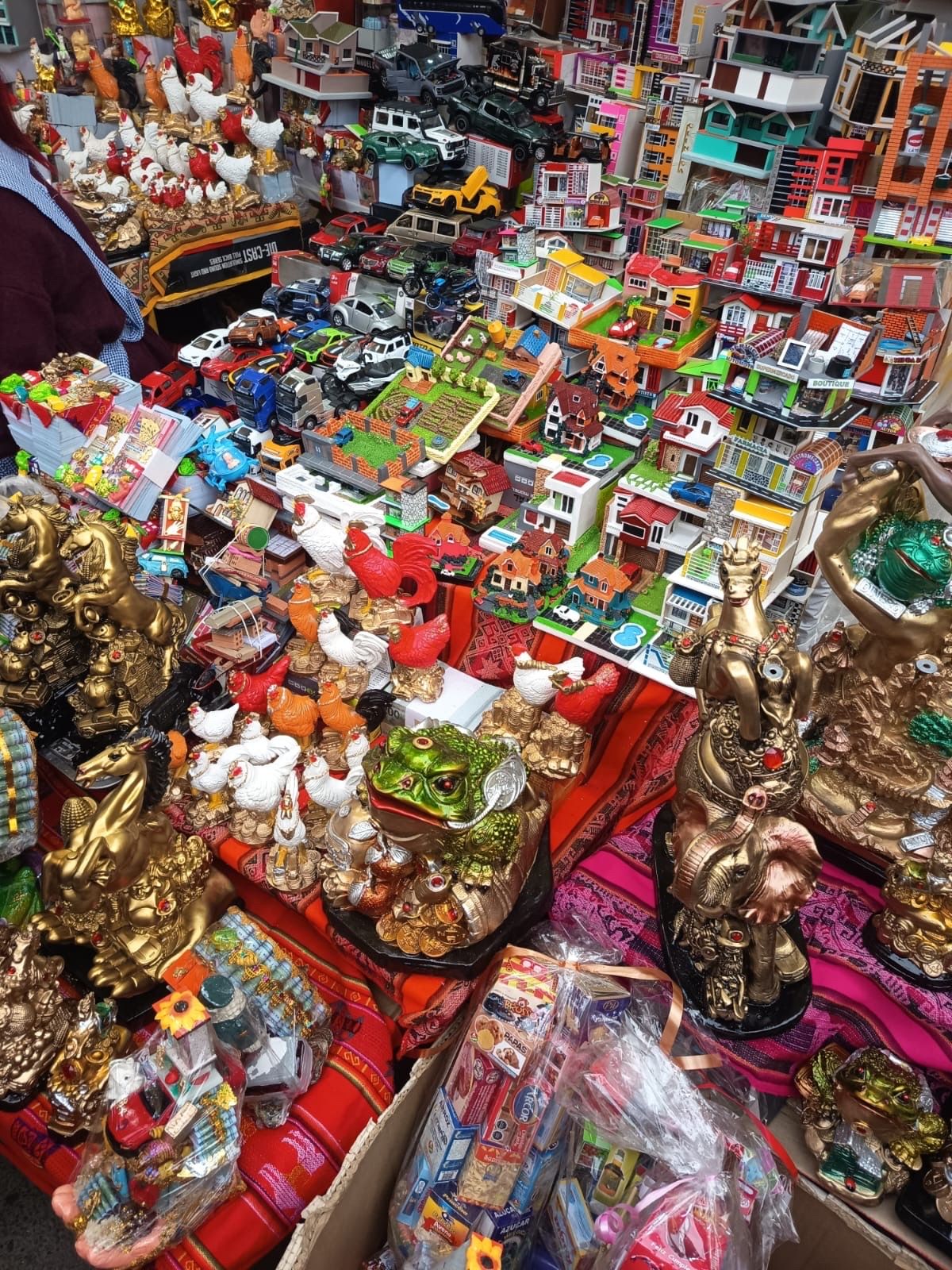 Im Januar findet in La Paz der berühmte Alasitas-Markt statt. Und zwar zu Ehren des Aymara-Gottes des Überflusses, dem Ekeko. Auf diesem Markt kann man alles in Miniatur kaufen: Häuser, Geld, Abschlüsse, Essen, Babys (also wirklich alles). Es wird geglaubt, dass man das Gekaufte im Laufe des Jahres „in echt“ bekommt. Also falls ich demnächst reich werde - ihr wisst bescheid ;).