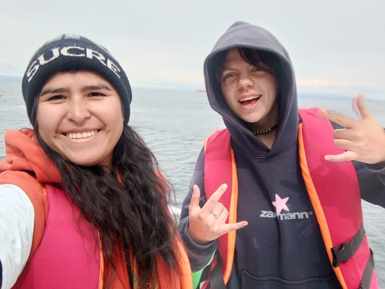 Ich und Martha bei einer Fahrt über den Titicacasee