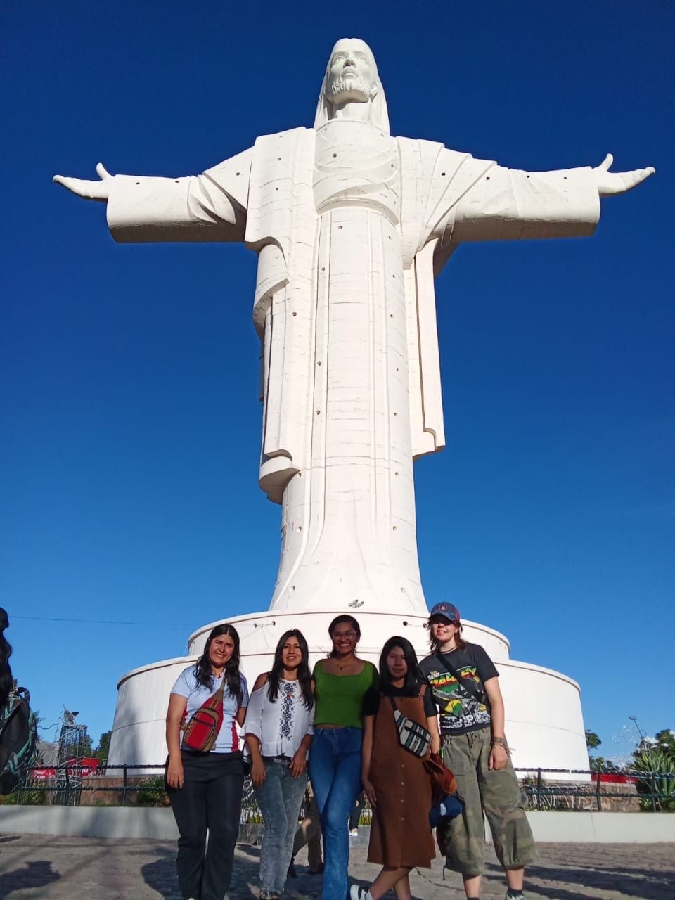 Ich und Freundinnen beim Christo de la Concordia in Cochabamba
